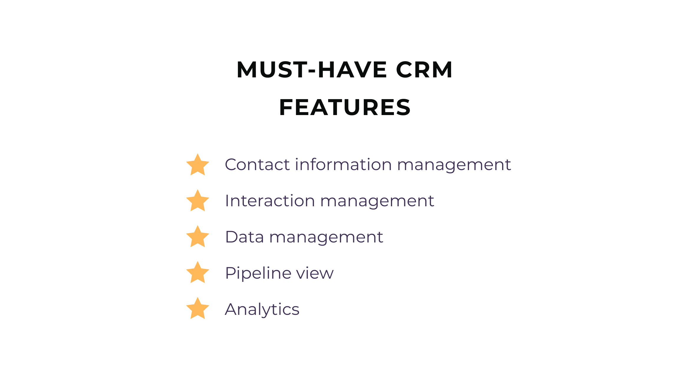 Now, when we are almost done with preparatory tasks, let’s take a look at the possible list of features for your CRM solution.