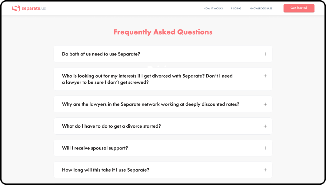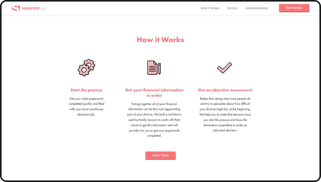 Our team developed a smart online platform for people to deal with exhausting divorce paperwork. Separate.us made a complicated and expensive divorce process in California very simple and affordable.
